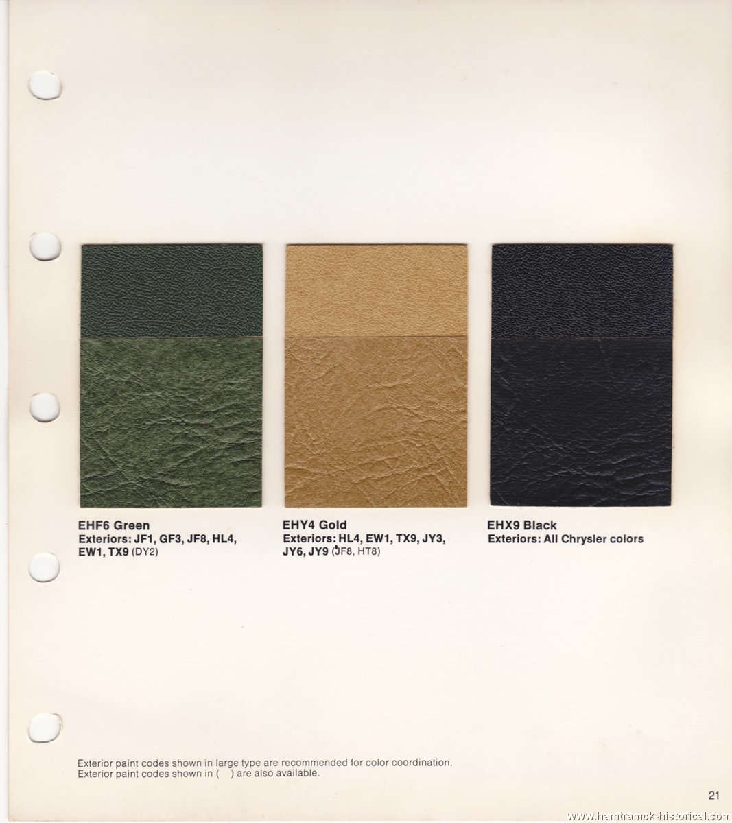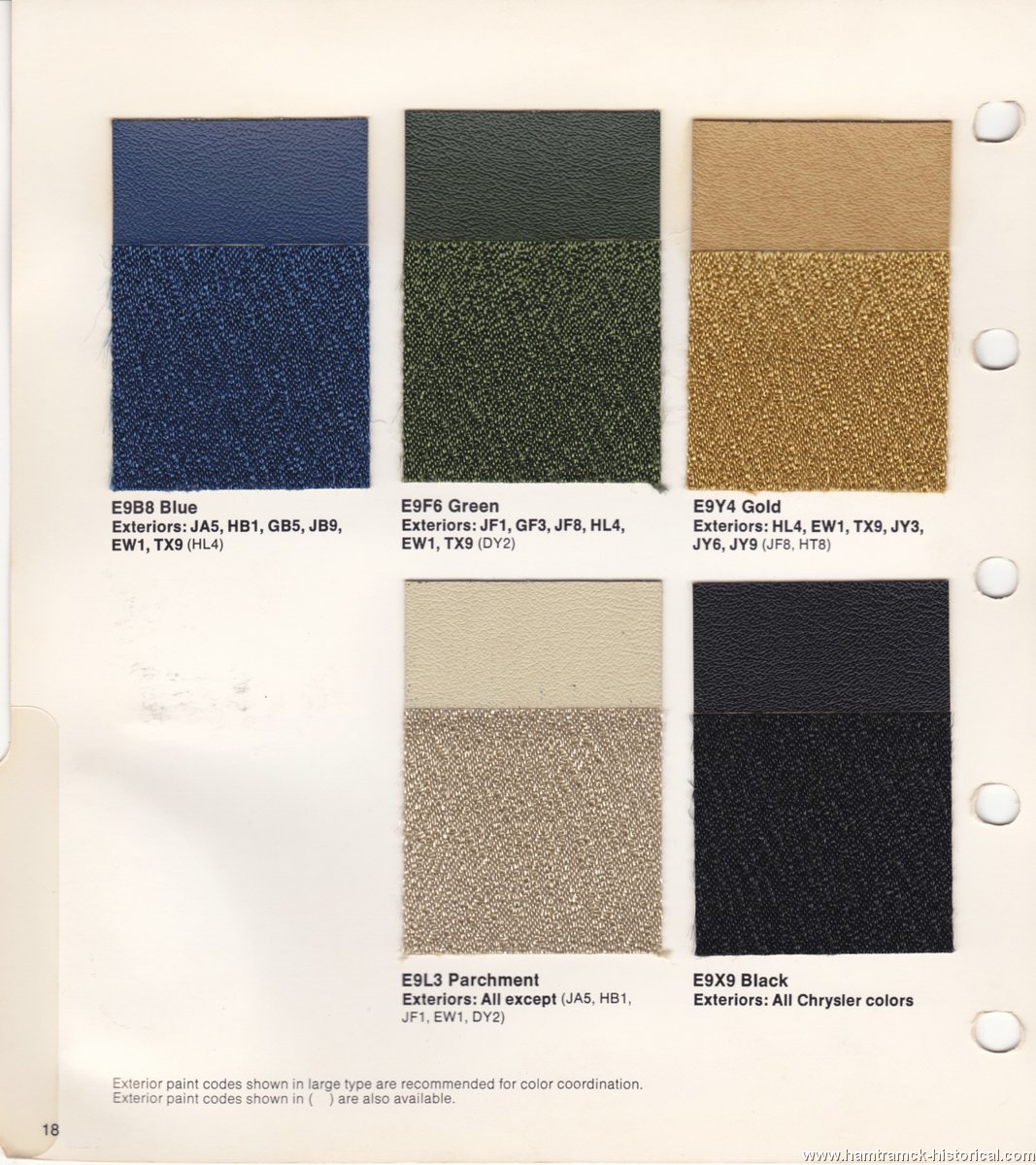 samples for the different interior patterns and swatches for the vinyl top colors